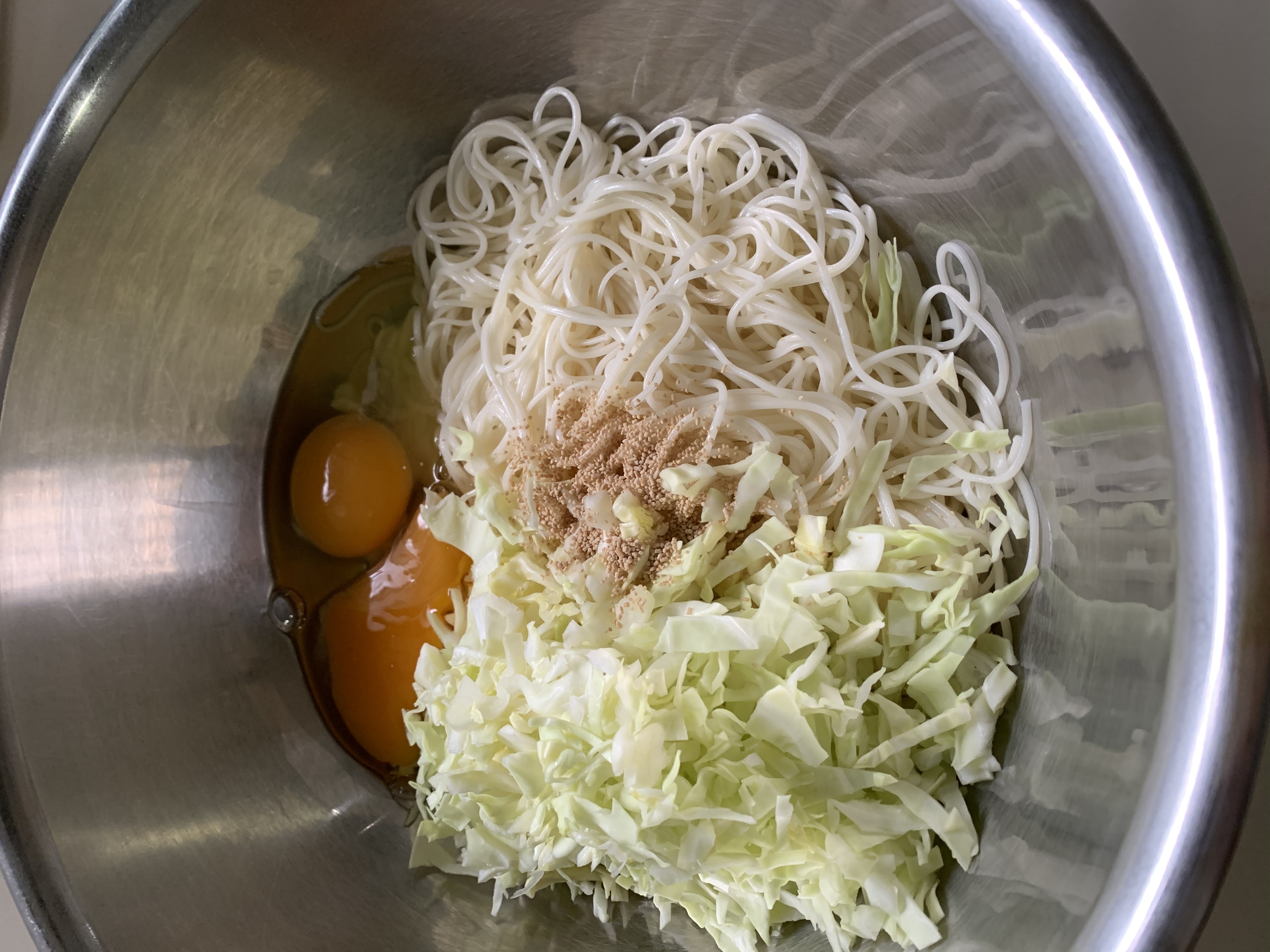寿木けい 新刊 土を編む日々 בטוויטר 素麺とキャベツのお焼き 休日の楽して嵩出しレシピ 茹でた素麺 刻む 鶏ひき肉 キャベツ しらす 卵 片栗粉 塩 醤油少々を混ぜて焼くだけ キャベツは千切りしてからいちど茹でてしんなりさせ 水気をよく絞ると嵩を